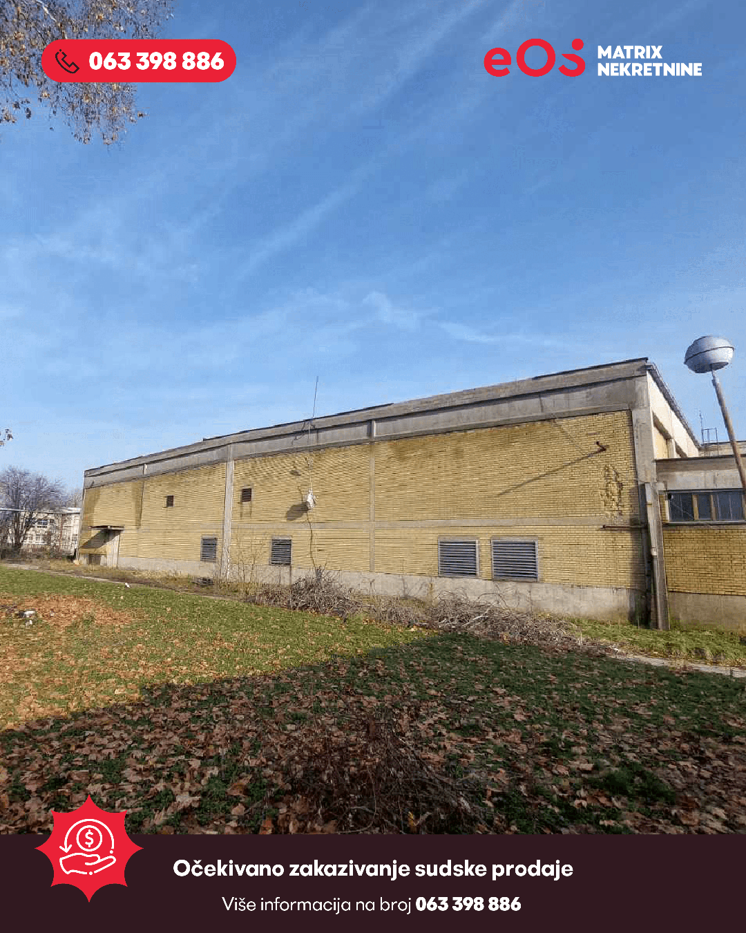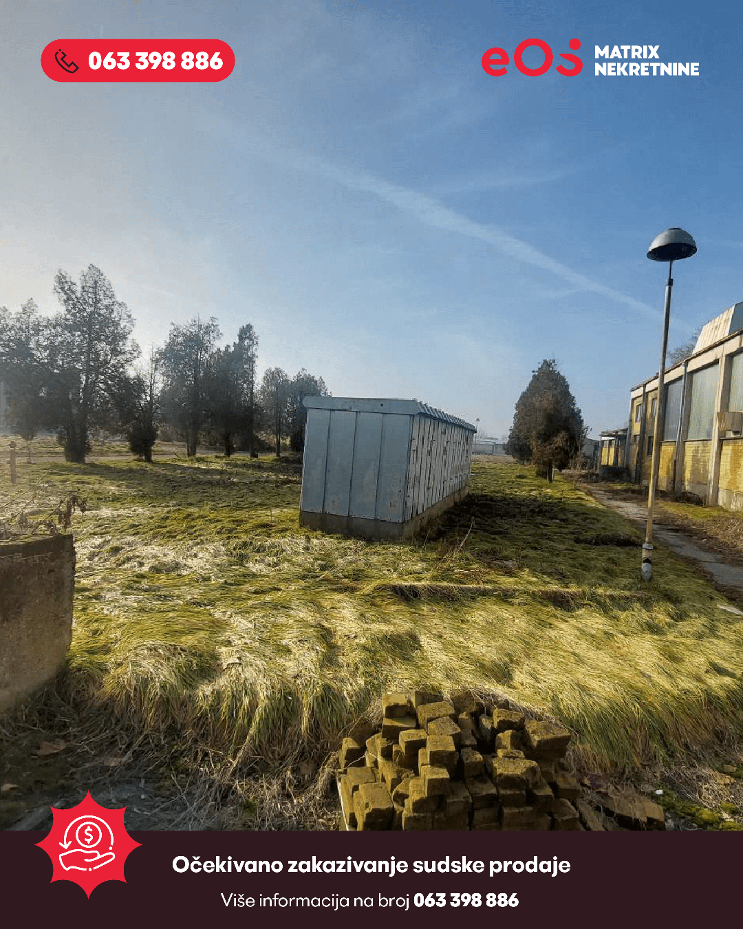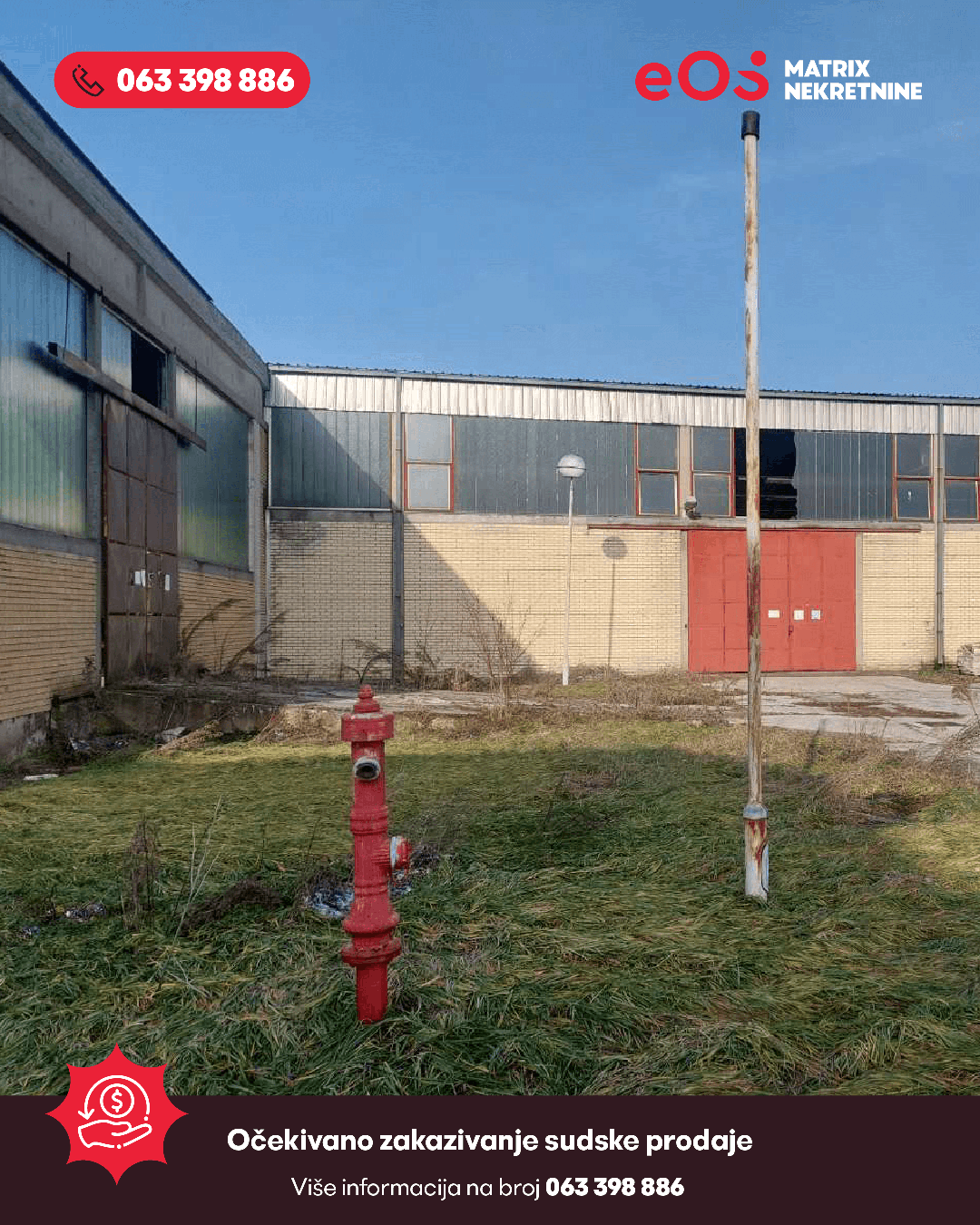 Pozivamo sve zainteresirane fizičke i pravne odobe da iskažu interes za kupovinu industrijskog kompleksa smještenog u centralnoj zoni Orašja. Prodaja nekretnine izvršit će se u okviru sudskog postupka koji se vodi pred Općinskim sudom u Orašju.