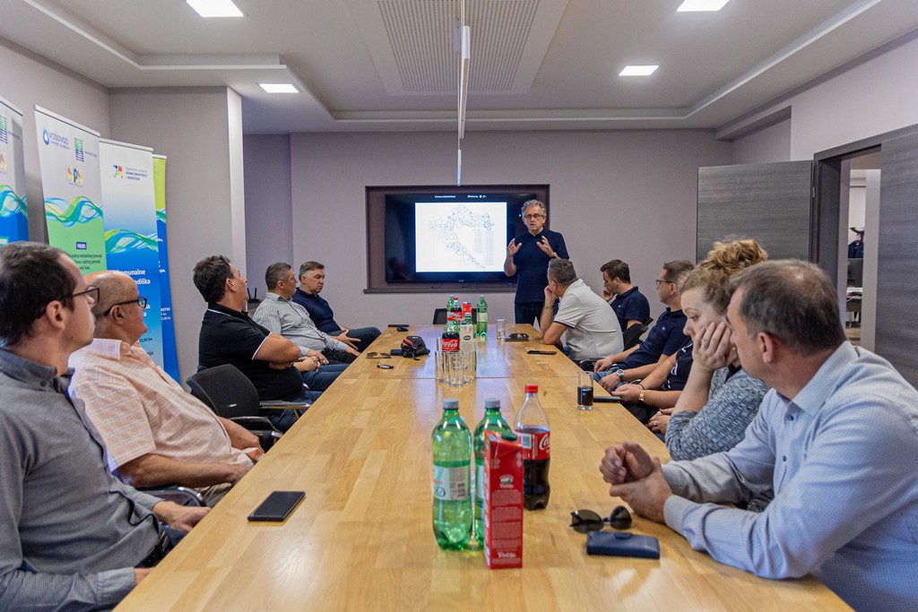 Početak obilaska krucijalnih točaka Vodovoda zapadne Slavonije otpočeli smo iz zgrade uprave gdje je direktor Davor Rukavina objasnio plan obilaska uz prigodnu prezentaciju.