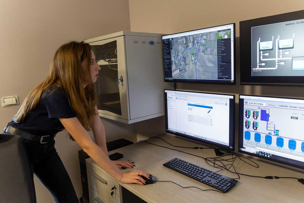 Najnovije završen projekt i apsolutna kontrola kompletnog sustava od crpilišta do isporuke vode prema kućama. Temeljna funkcija nadzorno upravljačkog sustava je pobrinuti se da sustav vodoopskrbe funkcionira besprijekorno. Osim toga, ovdje se obavlja i nadzor nad svim uređajima za pročišćavanje otpadnih voda i sustavom crpnih stanica na kanalizacijskoj mreži.
