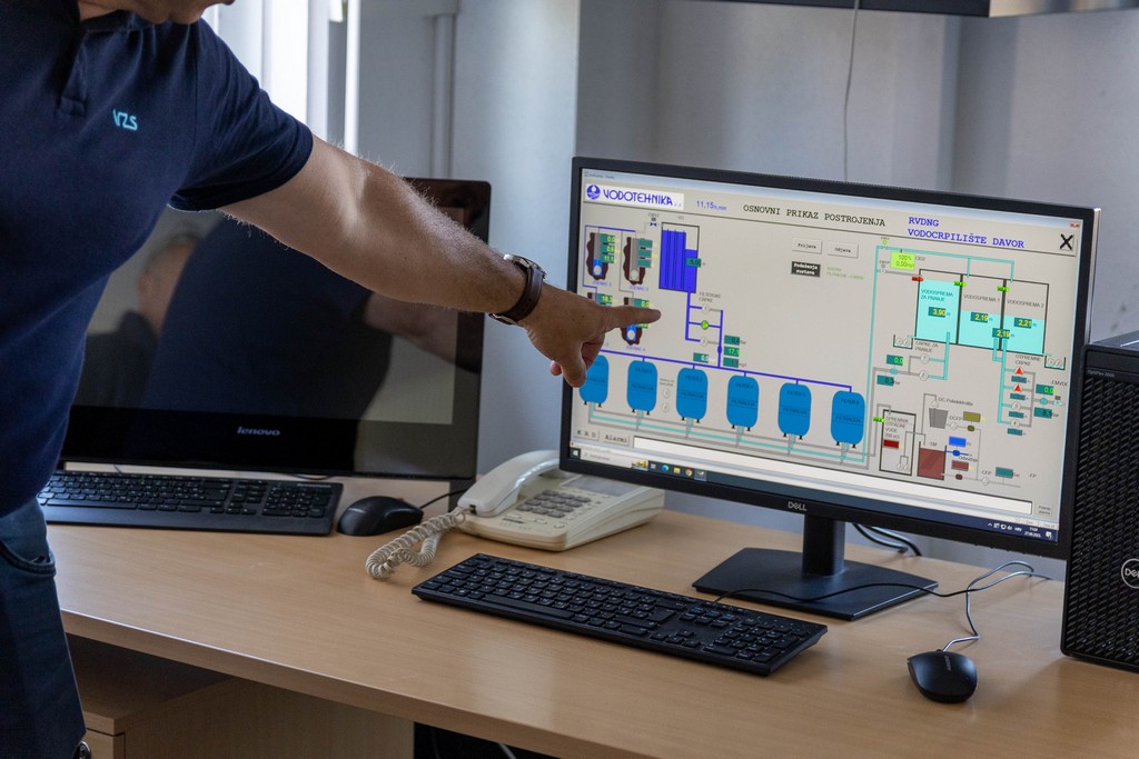 Operateri nadzorno upravljačkog sustava upravljaju zahvaćanjem sirove vode s vodozahvata na Strmcu i iz zdenaca u Davoru, reguliraju obradu i filtraciju zahvaćene vode na filter stanicama Bačica i Davor te otpremu pitke vode u vodospreme Bačica i Oštri Vrh putem SCADA sustava.