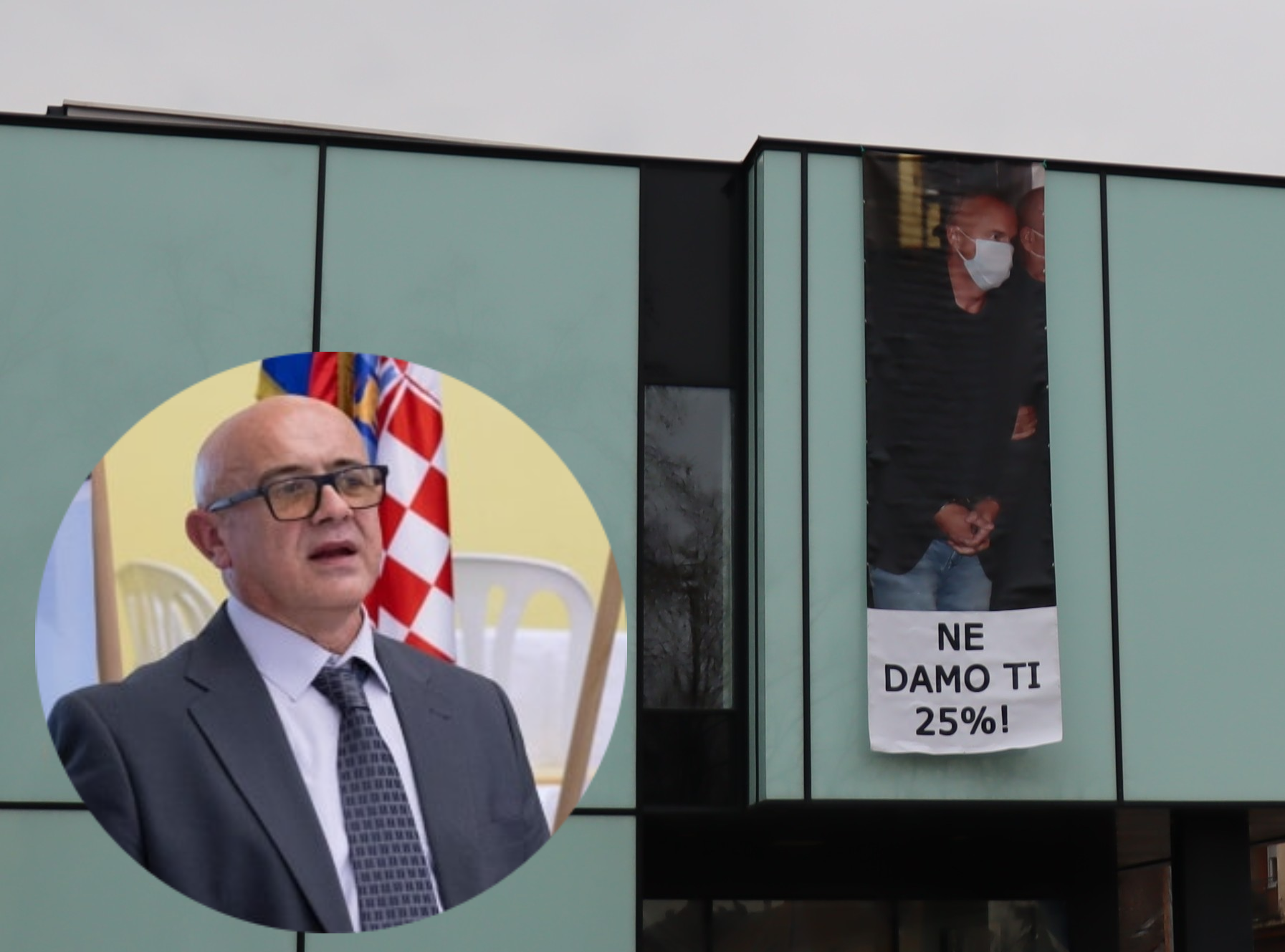 Plakat s porukom „Ne damo ti 25 posto“, koji je jučer osvanuo na pro...