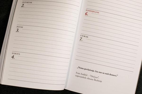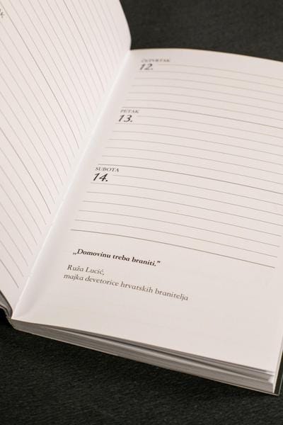 Zapisi Domovine jedinstveni su godišnji rokovnik u mekom uvezu, oblikovani kako bi pružili praktičnost u planiranju i snažnu povezanost s važnim trenucima hrvatske povijesti. U kompaktnom formatu 21 × 13,5 cm, užem i elegantnijem od standardnog A5, lako stane u torbu, automobil ili na radni stol – idealan za svakodnevnu upotrebu.