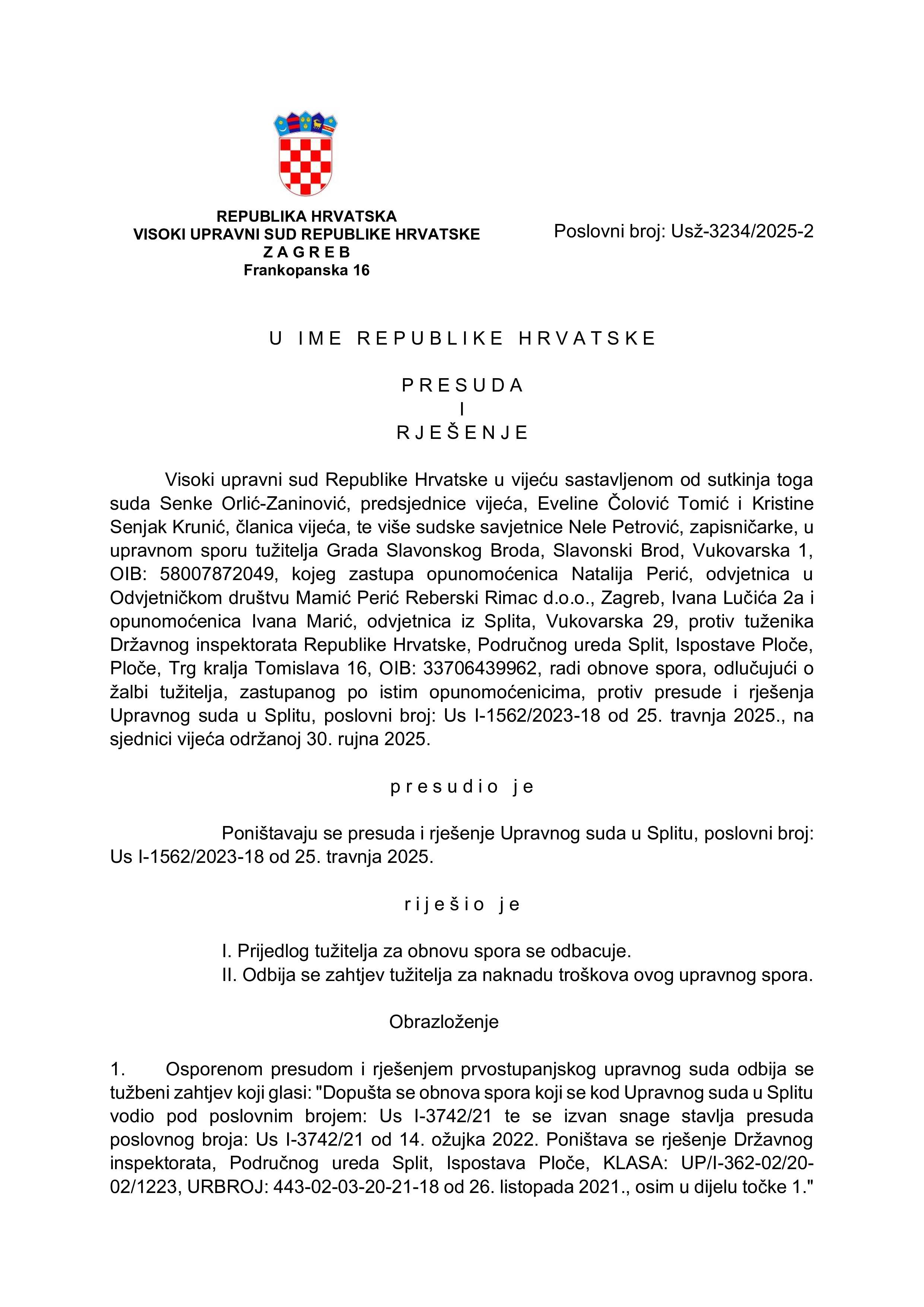 Pravomoćna presuda Visokog upravnog suda Republike Hrvatske od 30. rujna 2025. razotkrila je ono što gradska uprava Slavonskog Broda uporno pokušava zataškati: Grad Slavonski Brod u potpunosti je izgubio upravni spor oko gradskog odmarališta u Korčuli, bez ikakve mogućnosti daljnje žalbe. Time je potvrđeno da je Grad postupao nezakonito, a posljedice takvog postupanja izravno su snosili Brođani koji već treću godinu nemaju pristup svom gradskom odmaralištu na moru.
