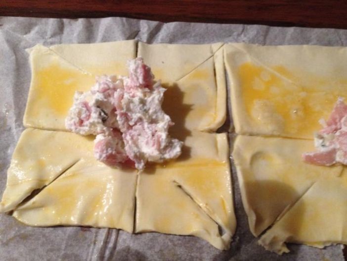 Na sredinu peciva stavljam po žlicu smjese za punjenje.