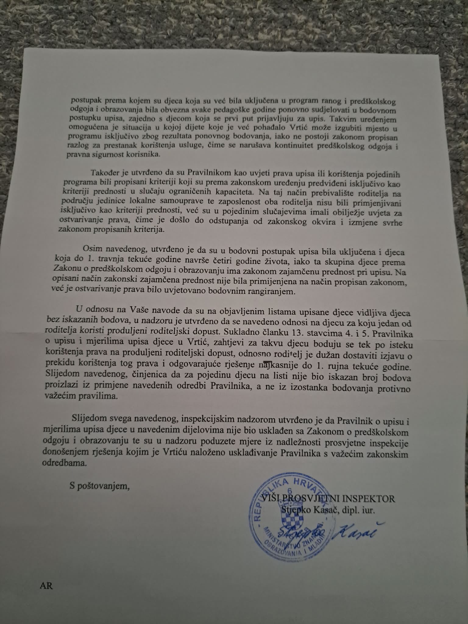 U posjedu smo službene inspekcijske dokumentacije iz koje je jasno vidljivo da broj djece u pojedinim skupinama nije bio usklađen s Državnim pedagoškim standardom predškolskog odgoja i naobrazbe. U dokumentu se navodi kako je „provedenim nadzorom utvrđeno da broj djece u pojedinim odgojno-obrazovnim skupinama nije bio usklađen s odredbama Državnog pedagoškog standarda“.